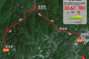(五)骑游线路:龙泉青瓷博物馆(起点)→剑川大道(南行)→环城南路(西行)→G322(西行)→G528(西行)→锦溪镇→住龙镇(半程组终点)→X102→宝溪乡(终点),路线全程78公里。
