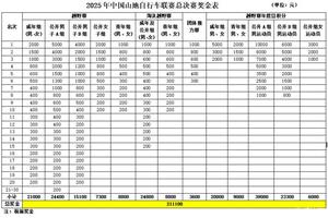 2. 2025年中国山地自行车联赛总决赛奖金表